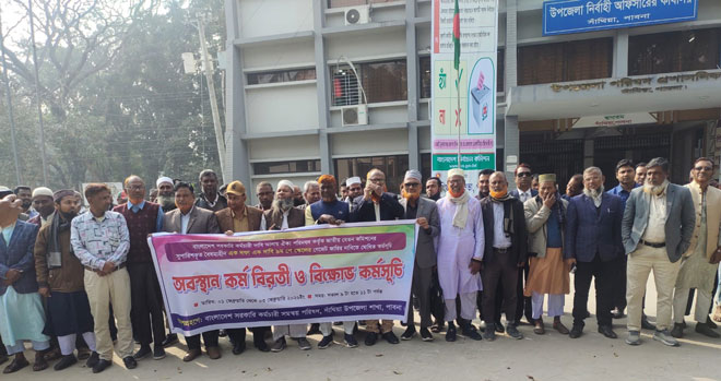 সোমবার(২ফেব্রুয়ারি)সাঁথিয়া উপজেলা পরিষদের সামনে উপজেলা মাধ্যমিক শিক্ষা কর্মকর্তা এ কে এম শামসুল হকের সভাপতিত্বে এবং উপজেলা সরকারি কর্মচারী সমন্বয় পরিষদের সভাপতি আমিনুল ইসলামের পরিচালনায় বক্তব্য দেন, মাদ্রাসা আদর্শ শিক্ষক পরিষদের সভাপতি ধুলাউড়ি কাওছাড়িয়া কামিল মাদ্রাসার সুপার আনোয়ার হোসেন, বোয়াইলমারী কামিল মাদ্রাসার ভারপ্রাপ্ত অধ্যক্ষ ডক্টর আব্দুল্লাহ,জোড়গাছা ডিগ্রী কলেজের অধ্যক্ষ (চলতি দায়িত্ব) সহকারী অধ্যাপক আনোয়ার হোসেন উল্লাস,সাঁথিয়া সরকারি কর্মচারী সমন্বয় পরিষদের সাধারণ সম্পাদক আজমল হোসেন, সহকারী অধ্যাপক জয়নুল আবেদীন রানা,সহকারী অধ্যাপক মনসুর আলম,সহকারী অধ্যাপক এম এ হাই, মাধ্যমিক শিক্ষক সমিতির আহবায়ক নাড়িয়াগদাইউচ্চ বিদ্যালয়ের প্রধান শিক্ষক আব্দুল হান্নান, সাঁথিয়া সরকারি পাইলট মডেল উচ্চ বিদ্যালয়ের প্রধান শিক্ষক (চলতি দায়িত্ব) রুহুল আমিন, সাঁথিয়া পাইলট বালিকা উচ্চ বিদ্যালয়ে প্রধান শিক্ষক আজিবর হোসেন,সাঁথিয়া সরকারি কর্মচারী সমন্বয় পরিষদের সহ-সভাপতি জসিম উদ্দিন,সাইফুল ইসলাম,প্রধান শিক্ষক নজরুল ইসলাম প্রমুখ। এ সময় এমপিওভুক্ত বেসরকারি স্কুল কলেজ,মাদ্রাসার শিক্ষক এবং বিভিন্ন দপ্তরের কর্মকর্তা-কর্মচারী কর্মসূচিতে অংশগ্রহণ করেন।