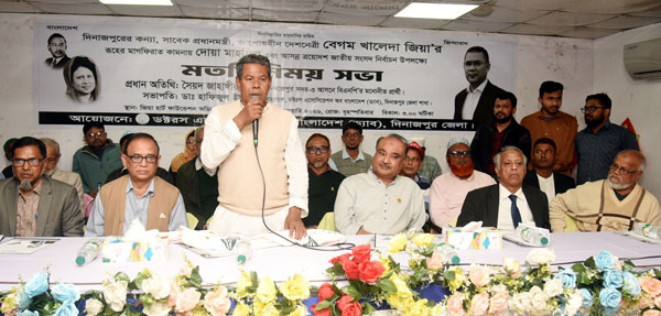 বৃহস্পতিবার (৫ ফেব্রুয়ারী-২০২৬) বিকেল সাড়ে ৩ টায় দিনাজপুর জিয়া হার্ট ফাউন্ডেশন অডিটোরিয়ামে ডক্টরস এসোসিয়েশন অব বাংলাদেশ (ড্যাব) দিনাজপুর জেলা শাখার আয়োজনে দিনাজপুরের কন্যা সাবেক প্রধানমন্ত্রী, আপোষহীন দেশনেত্রী বেগম খালেদা জিয়া’র রুহের মাগফিরাত কামনায় দোয়া মাহফিল এবং আসন্ন ত্রয়োদশ জাতীয় সংসদ নির্বাচন উপলক্ষ্যে মতবিনিময় সভায় প্রধান অতিথি ছিলেন দিনাজপুর-৩ (সদর) আসনের বিএনপি’র মনোনীত প্রার্থী সৈয়দ জাহাঙ্গীর আলম।