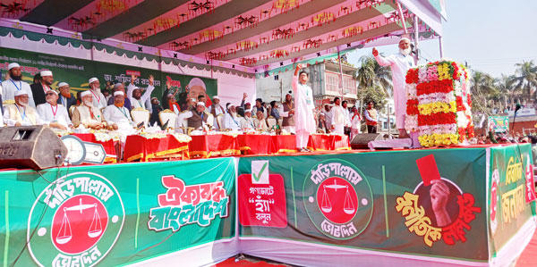 এসময় বিশেষ অতিথি ছিলেন-ডাকসুর ভিপি সাদিক কায়েম, জামায়াতে ইসলামীর বরিশাল বিভাগীয় আমীর এ্যাডভোকেট মোয়াজ্জেম হোসেন হেল্লাল, পটুয়াখালী জেলা জামায়াতের আমীর এ্যাডভোকেট নাজমুল আহসান পাপন ও ১১ দলীয় ঐক্যজোটের মনোনীত প্রার্থী পটুয়াখালী-১ আসনের মেজর ড.ওহাব মিনার, পটুয়াখালী-২ আসনের ড. শফিকুল ইসলাম মাসুদ, পটুয়াখালী-৩ আসনের অধ্যাপক শাহ আলম মাস্টার ও পটুয়াখালী-৪ আসনের ডা. জহির উদ্দিন আহম্মেদ সহ বাউফল উপজেলার বিভিন্ন শ্রেনি পেশার প্রায় অর্ধ লক্ষ্যাধিক নারী-পুরুষ প্রমুখ।