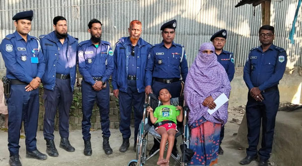 সিরাজগঞ্জ পুলিশ সুপারের মানবিকতায় হুইল চেয়ার ও নগদ অর্থ পেল প্রতিবন্ধী জিহাদ