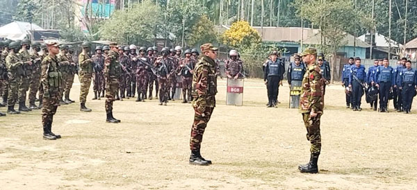 জাতীয় নির্বাচন ঘিরে বোদায় যৌথ বাহিনীর মহড়া