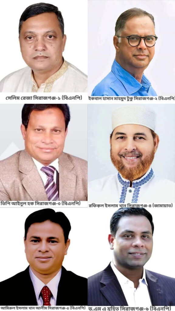 সিরাজগঞ্জের ছয়টি আসনের  ৫টিতে বিএনপি ১টিতে জামায়াত বিজয়ী