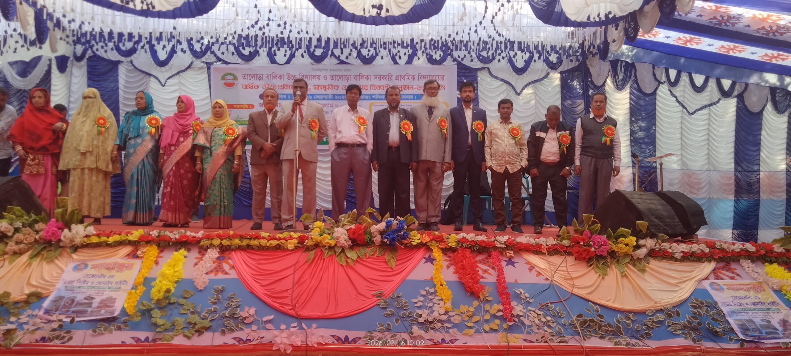 তালোড়া বালিকা উচ্চ বিদ্যালয় ও তালোড়া বালিকা সরকারি প্রাথমিক বিদ্যালয়ের শিক্ষকদের যৌথ আয়োজনে বার্ষিক ক্রীড়া প্রতিযোগিতা, সাংস্কৃতিক ও পুরষ্কার বিতরণী অনুষ্ঠান-২০২৬ ইং গতকাল সকাল দশটায় স্কুল মাঠে অনুষ্ঠিত হয়েছে।