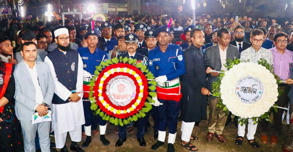 নড়াইলে পুষ্পস্তবক অর্পণ করেন এসপি আল মামুন শিকদার