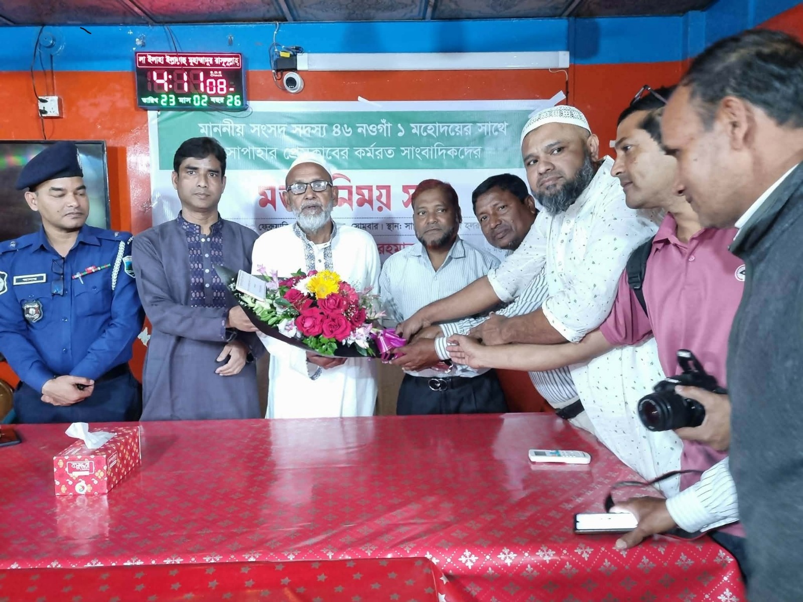 সোমবার (২৩ ফেব্রুয়ারি)পড়ন্ত বিকেলে সাপাহার প্রেসক্লাব কার্যালয়ে কর্মরত সাংবাদিকদের সাথে এক মতবিনিময় সভায় তিনি এসব কথা বলেন। সাপাহার প্রেসক্লাবের সভাপতি তছলিম উদ্দীনের সভাপতিত্বে অনুষ্ঠিত এ সভায় নবনির্বাচিত সংসদ সদস্যকে ফুল দিয়ে বরণ করে নেন সাংবাদিকরা।