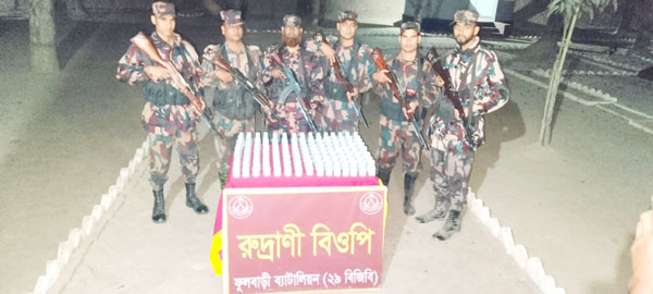 গত ০২ মার্চ ২০২৬ তারিখ ফুলবাড়ী ব্যাটালিয়ন ২৯ বিজিবি এর অধীনস্থ বিরামপুর, বড়গ্রাম, রুদ্রানী এবং আমড়া বিওপি কর্তৃক পৃথক পৃথক ০৪টি মাদক ও চোরাচালান প্রতিরোধ অভিযান পরিচালনা করে ৪০৩ বোতল বাংলাদেশী যৌন উত্তেজক সিরাপ, ৫৩৮ পিস ভারতীয় নেশাজাতীয় ইনজেকশন এবং ১৯৮ বোতল ভারতীয় ইস্কফ সিরাপ আটক করতে সক্ষম হয়। আটককৃত মাদকদ্রব্য ও চোরাচালানী মালামালের সিজার মূল্য ২ লক্ষ ২০ হাজার ৩শত ৫০টাকা।