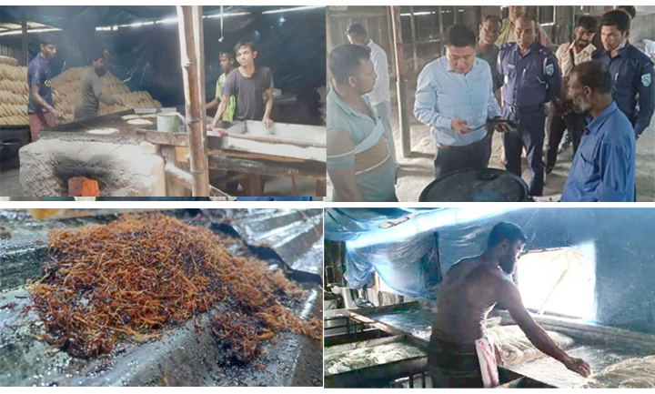 চৌধুরী ডাঙ্গাপাড়ার ‘আয়েশা-সালমা’ এবং ‘ভাই-বোন প্রোডাক্ট’ নামের দুইটা কারখানায় গিয়ে দেখা যায়, সেখানে অত্যন্ত নোংরা পরিবেশে সেমাই বানানো হচ্ছে এবং তাদের কোনো বৈধ লাইসেন্সও না থাকায়। এসব অনিয়মের কারণে দুই কারখানাকে মিলিয়ে মোট ২৫ হাজার টাকা জরিমানা করা হয়। ম্যাজিস্ট্রেট জানিয়েছেন, মানুষের স্বাস্থ্যের কথা ভেবে এই ধরনের অভিযান সামনেও চলমান থাকবে।