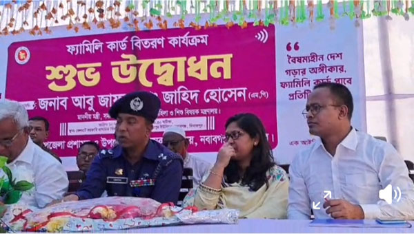 এম সাজেদুল ইসলাম (সাগর) নবাবগঞ্জ দিনাজপুর প্রতিনিধি ;  দিনাজপুরের নবাবগঞ্জ উপজেলায় সরকারের নতুন সামাজিক সুরক্ষা কর্মসূচি ‘ফ্যামিলি কার্ড’ বিতরণের আনুষ্ঠানিক উদ্বোধন করা হয়েছে। গতকাল ১০ মার্চ বিকেলে উপজেলার ১নং জয়পুর ইউনিয়নের ৬নং ওয়ার্ডের বেলঘাট সরকারি প্রাথমিক বিদ্যালয়ে এই কর্মসূচির স্থানীয় পর্যায়ে উদ্বোধনী অনুষ্ঠান অনুষ্ঠিত হয়।