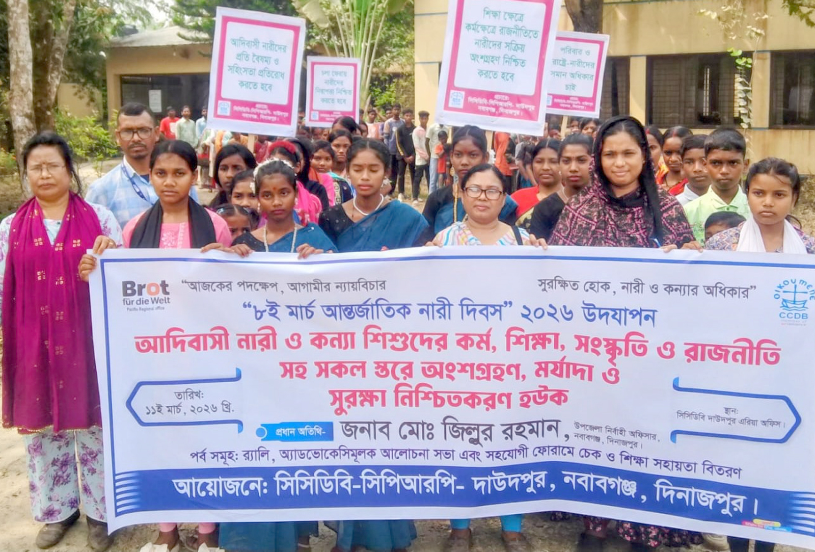 আজকের পদক্ষেপ,আগামীর ন্যায়বিচার সুরক্ষিত হোক নারী ও কন্যার অধিকার” প্রতিপাদ্যে সামনে রেখে দিনাজপুরের নবাবগঞ্জে আন্তর্জাতিক নারী আদিবাসী ও কন্যা শিশুদের কর্মসংস্থান, শিক্ষা, সংস্কৃতি দিবস ২০২৬ উদযাপিত হয়েছে।