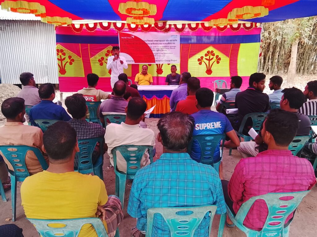 ১৪ মার্চ (শনিবার) দুপুর ১২:০০ ঘটিকায় সদরের হলোখানা ইউনিয়নের মাস্টারের হাট এলাকায় ওয়ার্ল্ড ভিশন বাংলাদেশের এসএসবিসি প্রকল্পের স্ট্রেনদেনিং সোশ্যাল এন্ড বিহেভিয়ার চেঞ্জ প্রকল্পের আয়োজনে ও ইউনিসেফের অর্থায়নে এ সভা অনুষ্ঠিত হয়।