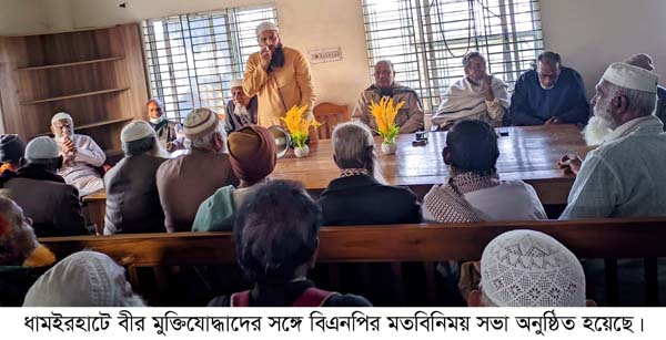 ধামইরহাটে বীর মুক্তিযোদ্ধাদের সঙ্গে উপজেলা বিএনপির মতবিনিময় সভা