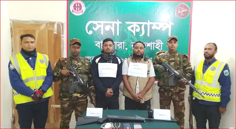 রাজশাহীর বাগমারা উপজেলায় সেনাবাহিনীর অভিযানে সিক্স স্টার গ্রুপের দুই সদস্যকে গ্রেপ্তার করা হয়েছে। গতকাল শুক্রবার ভোরে উপজেলার তাহেরপুর পৌরসভার মথুরাপুর এলাকায় এই অভিযান পরিচালনা করা হয়। অভিযানে গ্রেপ্তার দুজনের কাছ থেকে একটি ওয়াকিটকি সেট ও একটি রাইফেল উদ্ধার করা হয়েছে। গ্রেপ্তারকৃতরা হলেন, তাহেরপুর পৌরসভার মথুরাপুর তানাপাড়া গ্রামের মৃত আবুল হোসেনের ছেলে আবদুল হালিম (২৯) ও একই এলাকার বাসিন্দা আশরাফ আলীর ছেলে আবু বাশার (২৭)। আইনশৃঙ্খলা রক্ষাকারী বাহিনী সূত্রে জানা গেছে, তাঁরা যুবদলের রাজনীতির সঙ্গে জড়িত এবং সিক্স স্টার গ্রুপের সক্রিয় সদস্য। তবে এলাকাবাসী সেনাবাহিনীর এই অভিযানকে স্বাগত জানিয়েছেন। পুলিশ জানায়, শুক্রবার ভোরে সেনাবাহিনীর বাগমারা ক্যাম্পের দায়িত্বপ্রাপ্ত কর্মকর্তা মেজর আসিফ রায়হানের নেতৃত্বে একটি দল তাহেরপুরের মথুরাপুর তানাপাড়া গ্রামেতে অভিযান চালায়। অভিযানের সময় নিজ নিজ বসতবাড়ি থেকে আবদুল হালিম ও আবু বাশারকে গ্রেপ্তার করা হয়। এ সময় তাঁদের কাছ থেকে একটি ওয়াকিটকি সেট এবং একটি পয়েন্ট ২২ রাইফেল উদ্ধার করা হয় অভিযানের পর সেনাবাহিনীর সদস্যরা গ্রেপ্তার দুজনকে বাগমারা থানার পুলিশের কাছে হস্তান্তর করেন। আইনশৃঙ্খলা রক্ষাকারী বাহিনী ও স্থানীয় সূত্রে জানা গেছে, ২০২৪ সালের ৫ আগস্টের পর তাহেরপুর এলাকায় সিক্স স্টার গ্রুপের আত্মপ্রকাশ ঘটে। এই গ্রুপের সদস্যরা ছাত্রদল ও যুবদলের রাজনীতির সঙ্গে সম্পৃক্ত। তারা ওয়াকিটকি সেট ব্যবহার করে এলাকায় চলাফেরা করত এবং প্রভাব বিস্তার করত। স্থানীয়ভাবে পুকুর খননসহ বিভিন্ন কর্মকাণ্ড নিয়ন্ত্রণের পাশাপাশি নানা অপরাধমূলক কর্মকাণ্ডের সঙ্গে তাদের জড়িত থাকার অভিযোগ রয়েছে। এ বিষয়ে বাগমারা থানার ভারপ্রাপ্ত কর্মকর্তা সাইদুল আলম বলেন, সেনাবাহিনীর অভিযানের শেষ পর্যায়ে পুলিশ সহযোগিতা করেছে। শুক্রবার সকালে গ্রেপ্তার দুজনকে থানায় হস্তান্তর করা হয়েছে। তাঁদের বিরুদ্ধে থাকা অভিযোগ ও অপরাধের তথ্য যাচাই-বাছাই করা হচ্ছে। প্রয়োজনীয় আইনগত প্রক্রিয়া শেষে মামলা দায়ের করে আদালতে পাঠানো হবে। উল্লেখ্য,বাগমারার ভবানীগঞ্জ ও তাহেরপুর পৌরসভা এলাকায় ২০২৪ সালের ৫ আগস্টের আগে আওয়ামীলীগ ক্যাডারদের হাতে থাকা পিস্তলসহ বিভিন্ন অবৈধ অস্ত্র এখন পর্য়ন্ত উদ্ধার করতে পারেনি পুলিশসহ আইনশৃঙ্খলা রক্ষাকারী বাহিনীর সদস্যরা। তবে সেনাবাহিনীর এই অভিযানকে স্বাগত জানিয়েছেন এলাকার সচেতন মহল।#