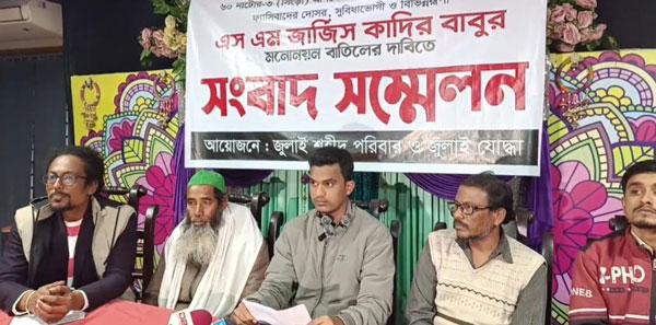 এ সময় বক্তারা বলেন, জার্জিস কাদির বাবু ফ্যাসিবাদের দোসর। সাবেক আইসিটি প্রতিমন্ত্রী জুনায়েদ আহমেদ পলক ও রাজশাহীর সাবেক মেয়র খাইরুজ্জামান লিটনের ঘনিষ্ঠজন ছিলেন। এর আগে সে রাজশাহীর বিএনপির নেতা রাসিক মেয়র মিজানুর রহমান মিনুরও ঘনিষ্ঠজন ছিলো। তাছাড়া ছাত্র জীবনে সে জাসদের রাজনীতিও করেছেন। আদর্শ বলে তার তেমন কিছু নেই, সে শুধু নির্বাচনের জন্য এনসিপির শরণাপন্ন হয়েছেন। জুলাই আন্দোলনেও তার কোন ভূমিকা নেই। কেন্দ্রীয় নেতাদের হাত করে তিনি মনোনয়ন নিয়েছেন, তৃণমূলেও তার কোন কর্মকাণ্ড নেই। তারমতো সুবিধাবাদীকে জুলাই পরবর্তী বাংলাদেশে মনোনয়ন দেওয়া হাস্যকর। এছাড়া ইসলামী মূল্যবোধে বিশ্বাসী ও ইসলামিক ঘরোনা একটি জোটে তার মনোনয়ন বিরূপ ভূমিকা রাখতে পারে। ইসলামের জন্য সম্ভাবনাময় এই আসনটির মনোনয়ন পরিবর্তন জরুরী। তা না হলে সুনিশ্চিত আসনটি হাতছাড়া হওয়ার আশঙ্কা রয়েছে তাই অবিলম্বে জার্জিস কাদিরের মনোনয়ন প্রত্যাহারের দাবি জানান তারা।