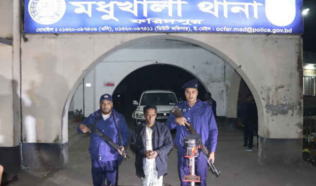 ২৩ জানুয়ারী ২০২৬খ্রি.শুক্রবার বিকেল সাড়ে ৫টার দিকে উপজেলার ডুমাইন ইউনিয়নের জাননগর গ্রামে(পঞ্চপল্লীর একটি গ্রাম)অবৈধভাবে দেশীয় আগ্নেয়াস্ত্র তৈরির অভিযোগে সেনা অভিযানে ১ জনকে অস্ত্র ও অস্ত্র তৈরীর সরঞ্জামসহ আটক করা হয়েছে। অভিযানে তার বসতবাড়ি থেকে একটি সিঙ্গেল ব্যারেল পাইপ গান, ১২ গেজের একটি কার্তুজ এবং অস্ত্র তৈরিতে ব্যবহৃত বিভিন্ন যন্ত্রাংশ ও সরঞ্জাম উদ্ধার করা হয়েছে। মধুখালী সেনাক্যাম্প সূত্রে জানা গেছে,জাননগর গ্রামে দেশীয় অস্ত্র প্রস্তুত ও সরবরাহ নিয়ে বেশ কিছুদিন ধরে মধুখালী আর্মি ক্যাম্পে একাধিক অভিযোগ আসছিল। স্থানীয় সূত্রের তথ্য অনুযায়ী, বাদল সরকার নামে একজন ব্যক্তি নিজের নির্মিত ওয়ার্কশপে বা কামারসালায় নিয়মিতভাবে অস্ত্র প্রস্তুত করতেন এবং ফরিদপুর ও রাজবাড়ী জেলাসহ বিভিন্ন এলাকার স্থানীয় দুর্বৃত্তরা তার তৈরিকৃত অস্ত্র দিয়ে এলাকায় চাঁদাবাজি, ডাকাতি ও বিশৃঙ্খলা সৃষ্টির চেষ্টা করত বলে অভিযোগ রয়েছে। এ বিষয়ে আইনশৃঙ্খলা বাহিনী আগেও কয়েক দফায় তাকে আটক করতে চেষ্টা করলেও তা ব্যর্থ হয়। সম্প্রতি আসন্ন নির্বাচনকে বানচাল করার উদ্দেশ্যে ও ভোটারদের মধ্যে আতঙ্ক সৃষ্টির জন্য দুর্বৃত্তরা তার কাছে অস্ত্র তৈরীর অর্ডার দিয়েছে বলে জানা গেলে এ নিয়ে ফরিদপুরে জনমনে নির্বাচন নিয়ে আশঙ্কা সৃষ্টি হয়। নির্ভরযোগ্য তথ্য মতে, জাননগর গ্রামে বাদল সরকার নিজস্ব ওয়ার্কশপে বা কামারসালায় দেশীয় আগ্নেয়াস্ত্র তৈরি করছেন। এ তথ্যের ভিত্তিতে মধুখালী সেনাক্যাম্পের নেতৃত্বে ১৫ রিভারাইন ইঞ্জিনিয়ার ব্যাটালিয়ন এবং মধুখালী থানা পুলিশের সমন্বয়ে তাৎক্ষণিকভাবে একটি যৌথ অভিযান পরিচালনা করা হয় এবং অভিযানে সন্দেহভাজনের বসতবাড়ি ঘিরে তল্লাশি শুরু করা হয়। অভিযানকালে জাননগর গ্রামের বাদল সরকার (৫২), পিতা: মৃত নিতাই সরকার নিজ বসতবাড়ি থেকে আটক করা হয়েছে। তল্লাশিতে তার হেফাজত থেকে ১টি সিঙ্গেল ব্যারেল পাইপ গান, ১টি ১২ গেজ কার্তুজ, ১৪টি রিকয়েল স্প্রিং, ২টি হ্যামার, ১টি ড্রিল মেশিন, ১টি প্লায়ার্স, ১টি ব্লোয়ার, ১টি হ্যাকস সহ অস্ত্র তৈরির বিপুল পরিমাণ সরঞ্জামাদি উদ্ধার করা হয়ছে। আইনশৃঙ্খলা বাহিনীর সূত্র জানায়, বাদল সরকারের বিরুদ্ধে এর আগেও অস্ত্র সংক্রান্ত একাধিক মামলা রয়েছে এবং তিনি বিভিন্ন সময় অস্ত্র প্রস্তুত ও মজুদের অভিযোগে পুলিশের নজরদারিতে ছিলেন।আটক আসামিকে এবং উদ্ধারকৃত অস্ত্র ও সরঞ্জামাদি আইনগত প্রক্রিয়ায় মধুখালী থানা পুলিশের কাছে হস্তান্তর করা হয়েছে। তার বিরুদ্ধে সংশ্লিষ্ট অস্ত্র নিয়ন্ত্রণ আইনে মামলা দায়ের করা হয়েছে এবং এ ঘটনায় সম্ভাব্য ক্রেতা/সংশ্লিষ্টদের শনাক্তে তদন্ত চলমান রয়েছে। মধুখালী সেন